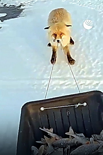 В Казахстане степная лиса пыталась утащить сани, нагруженные рыбой. Казахстанский журналист Тимур Казьмин опубликовал в Сети видео с неожиданной попыткой кражи улова у рыбака.