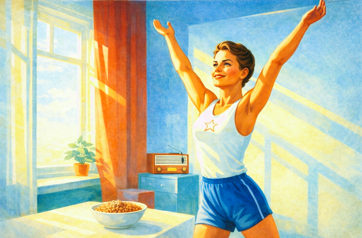 Представьте: 1960-е годы, пять часов утра, из радиоточки доносится бодрый голос: «Товарищи, на зарядку становись!» И миллионы людей от Калининграда до Владивостока синхронно делают наклоны в сторону. Сейчас это кажется чем-то из фантастики, правда? А тогда это была норма жизни, как чистить зубы по утрам.