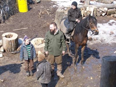 «А вино у нас есть? А где вино-то? Давай-ка, вина достань, — командует Герман жене — Надо выпить за знакомство и по трезвому поговорить». Потом спохватывается, что среда (постный день), и предлагает дождаться заката (после заката считается новый день). А пока угощаюсь «свойским» чаем с домашним хлебом. Хлеб, надо признать, вкусен. Но дороговат, по 380 рублей за булку. Зато «ручной сборки» по всему циклу: сами сеют, сами жнут, сами мелют и пекут. Причем землю пашут на лошадях, по старинке.